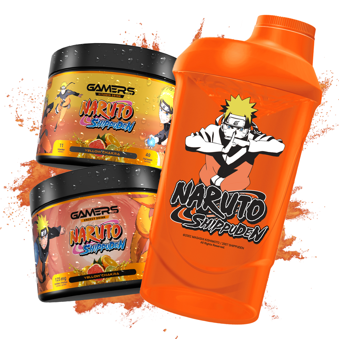 Fans de Naruto, attention ! Le bundle Natuto te fournit une boisson de performance Naruto, une boisson vitaminée Naruto et notre shaker Naruto ! Découvre notre formule de performance unique avec de la caféine, de la L-tyrosine et des vitamines dans la variété YELLOW Chakra ou goûte à la boisson vitaminée sans caféine. Parfaites pour tous les vrais fans, elles te fournissent un maximum d'énergie et de concentration pour chaque situation, avec zéro sucre et une qualité Made in Germany. Elles ont été développées pour toi par des experts en nutrition et sont de véritables bombes gustatives !